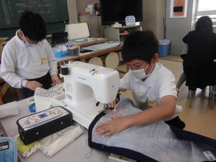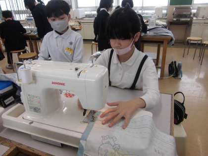 ミシンの使い方も随分と慣れてきました。もうすぐ素敵なエプロンが出来上がります。