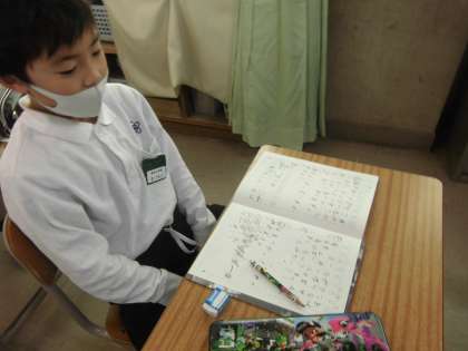 引き算の文章問題を図を使って考えます。自分の考えをノートに書くことができてきました。