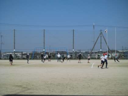 キックベースボールに取り組みました。運動場に元気な声が響いています。