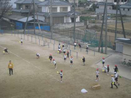 テニピンにチャレンジです。手のひらでボールを受けるので扱いやすいはずですが、子どもたちにはなかなかむつかしいようです。