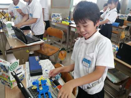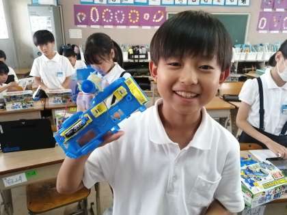 電気の通り道を作ると、プロペラが回るようです(^−^)