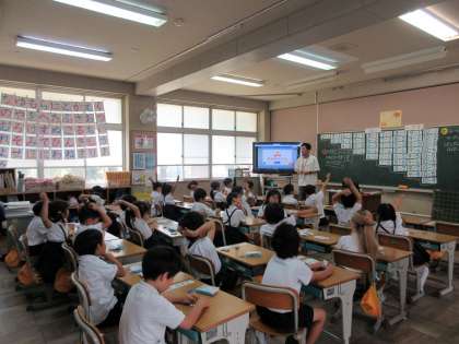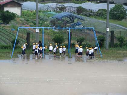 1組は生活科。校庭に雨上がりの様子を見に行っていました。水たまりを見つけたり、草の様子を観察したり・・・楽しそうです!