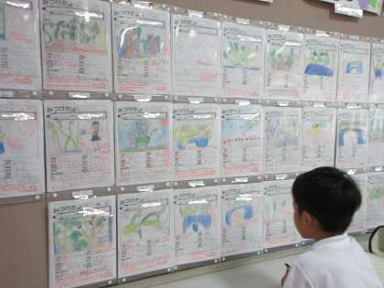 2組の教室にはあさがおの観察のワークシートが掲示されていました。