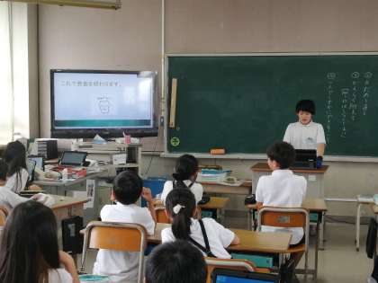 2組は、パワーポイントを使って自己紹介をしていました。自分の好きなものや苦手なことをみんなに知ってもらえるって嬉しいね♪友だちの自己紹介も、興味津々で聞いていました(^−^)