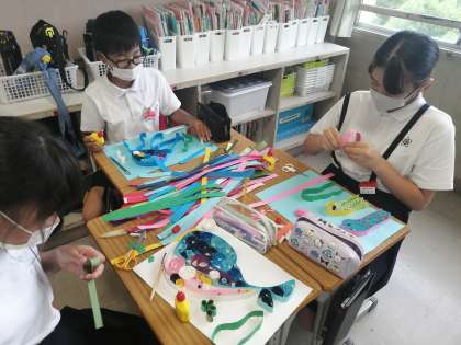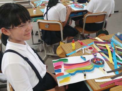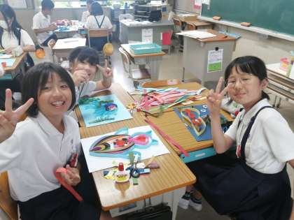 画用紙を立てて貼るだけで、立体的な海の生き物を表現していました。
