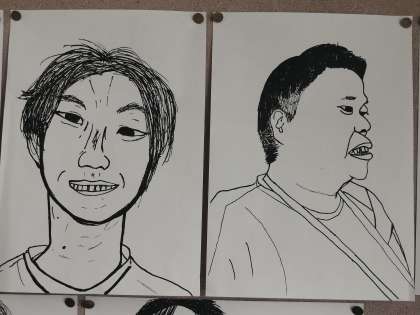 1組の後ろには、先生の絵が飾られていました。そっくり!!