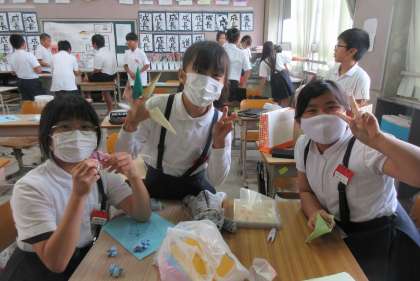 2組は、お祭りの準備中。射的の準備に景品作り、教室が活気づいていました✨