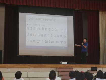 先週の金曜日、アセアン交流がありました。カンボジア出身の先生に、カンボジアの国の文化についてたくさん教えて頂きました。クメール語はすごく難しいな。昆虫を食べるなんてびっくり!カンボジアの絶景を見に行ってみたい!など、ノートいっぱいに感想を書いていました。