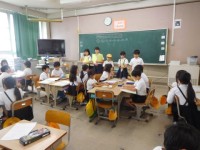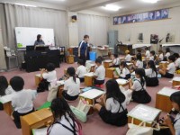 どちらのクラスも国語。1組は教育実習の先生と一緒にミニ先生が前に出て,自分たちで...