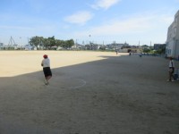 秋空のもと,6年生が運動場で連運の練習をしています🏃がんばれ~っ🚩🚩🚩