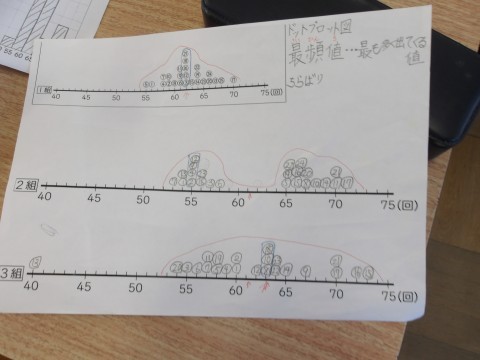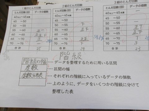 クラスごとの8の字跳びの回数を分析し,どこが優勝するのか予想を立てています。