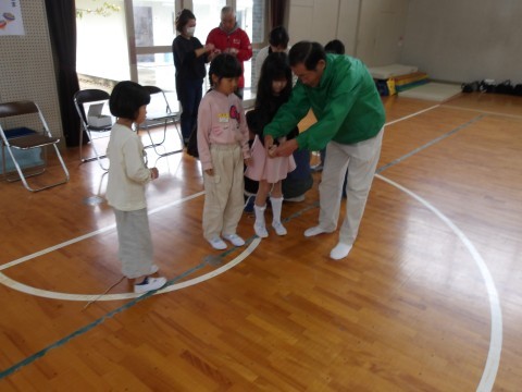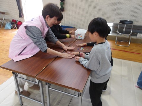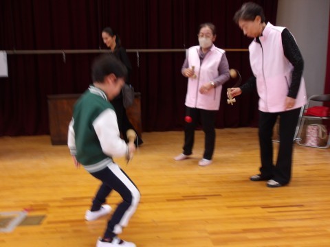 地域の方に来ていただき,昔遊びを教えてもらいました。こまやあやとり,けん玉などたくさんの遊びにみんないきいき取り組んでいました。