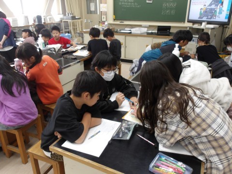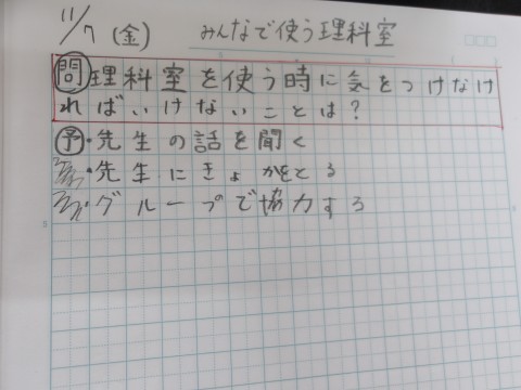 理科室の使い方の学習をしています。理科室を安全に使うためのルールがありますね。