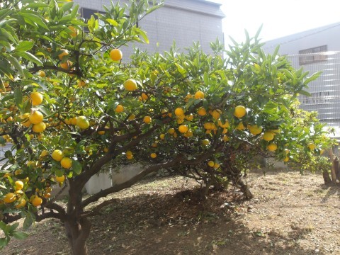 校内にみかんがなっています。