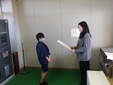 放送朝会を行いました。新しく赴任した先生の紹介がありました。また児童会から募金のお知らせ・生活指導の先生の話,表彰がありました。
