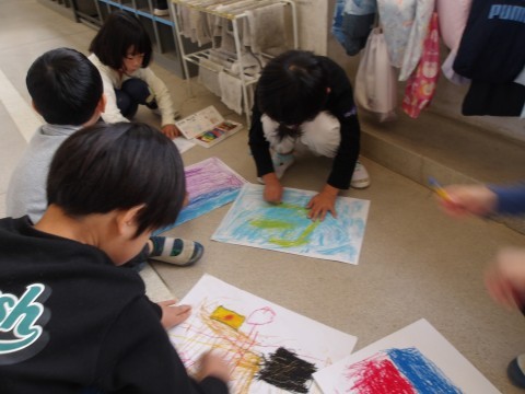 地面の凸凹や網目模様を利用して,楽しい模様を楽しんでいます。
