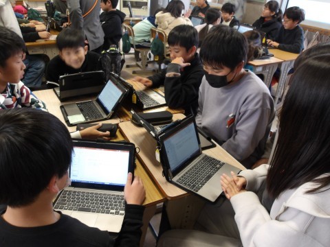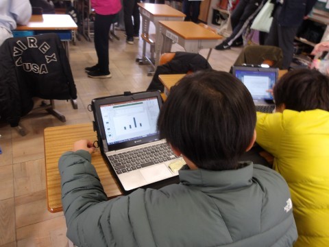 「今・未来プロジェクト」としてグループに分かれてプロジェクトを進めています。自分たちでとったアンケートをエクセルでまとめて,集約しています。