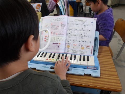 鍵盤ハーモニカの練習をしていました。テストがあるそうです。頑張って練習して下さいね。
