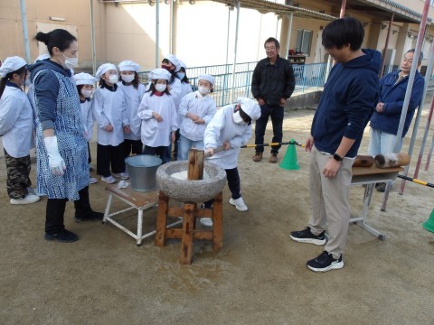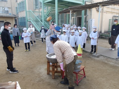 3年生がもちつきに参加しました。なかなか体験できないことなので子どもたちは大変嬉しそうな様子でした。おもちをついたり,丸めたり・・とても楽しかったですね。丸めたお持ちは一人ひとり持ち帰りました。きっと美味しかったでしょう。本校のもちつきは地域の方・PTAの方の協力で成り立っております。ご協力頂いた皆様,子ども達に素敵な体験をさせて頂き本当にありがとうございました。