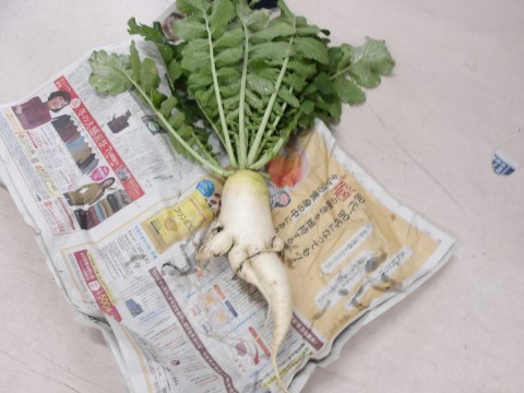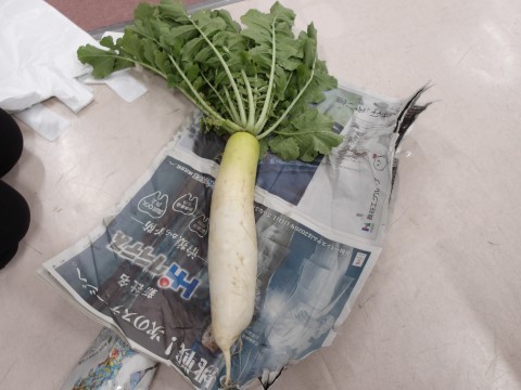 ふれんず学級で育てていた大根が立派に育ちました。太い大根や形の不思議な大根などとても面白いですね。