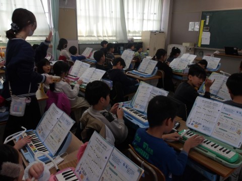 鍵盤ハーモニカの練習をしています。クラスのみんなであわせるととても気持ちが良いですね。