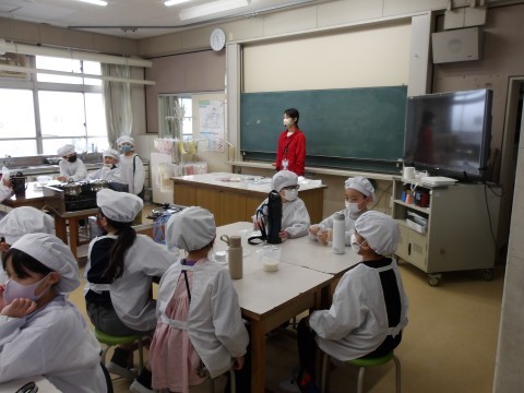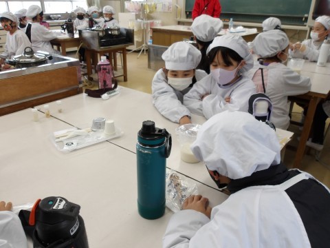 Coopの方に手作り豆腐の出前授業を行って頂きました。初めて豆腐をつくる体験がとても嬉しかったですね。