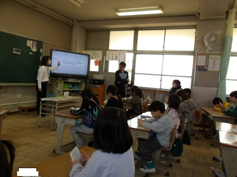 「自分達が行ったお手伝いをもっとレベルアップしよう」という授業です。クラスの友達とレベルアップカードを交換し,整理した上で自分のレベルアップについて考えます。今日は研究授業でしたのでたくさんの先生達が参観に来てくれました。