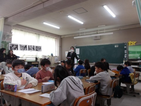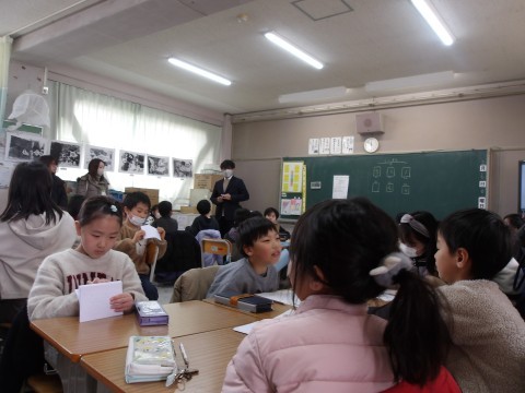 友だち同士でポジティブカードを交換しあっています。友達の良さを認め合えるって素敵な活動ですね。