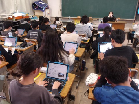 公害について情報収集していました。ipadが導入され,タブレットもスムーズに動くので学習がはかどりますね。