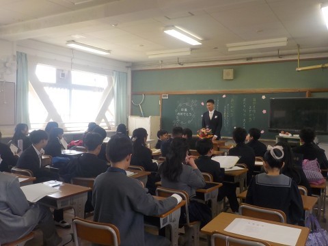 卒業式後,最後の学級指導です。それぞれのクラスで先生が語り,別れを惜しんでます。