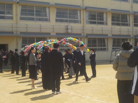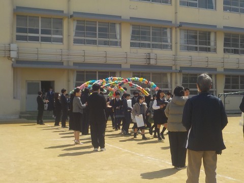 卒業生が巣立っていきます。素晴らしい卒業生でした。素敵な中学校生活を送って下さいね。いつまでも応援しています。