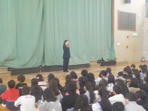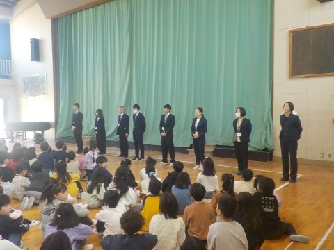 体育館にて修了式と離任式を行いました。校長先生より1年間のふりかえりのお話がありました。みなさんに成長を強く感じた一年間でした。次に今年度で南八下小学校を去られる先生方のあいさつがありました。