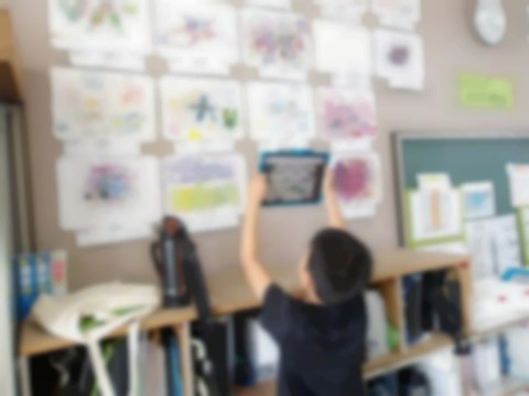 3年生では書写の授業が始まります。筆でいろいろな線を書く練習をしていました。図工の授業では、友達が作った作品の鑑賞をしていました。
