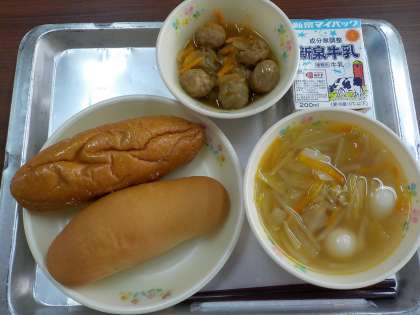 ミニパン,牛乳,揚げパン,中華スープ,肉団子の甘酢煮でした。