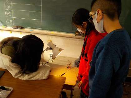 理科で光電池の働きについて考えています。