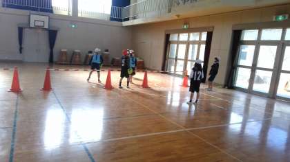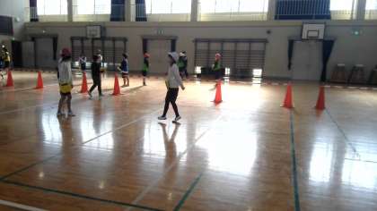 体育で「テニピン」をしています。「テニピン」はテニスと卓球の間のようなスポーツです。