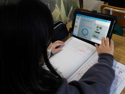 町探検に行って調べたことをコンピュータにまとめています。