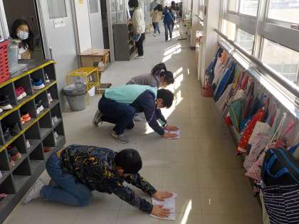 お掃除をがんばっています。学校がどんどんきれいになっていきます。みんなのためにいつもありがとうございます。