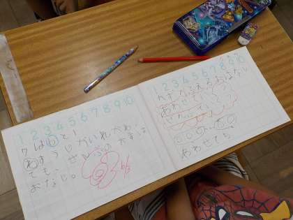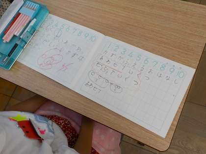 算数で「あわせていくつ」をノートに書いて学習しました。