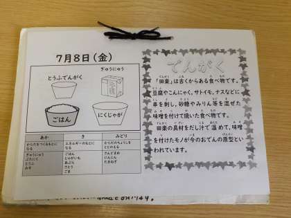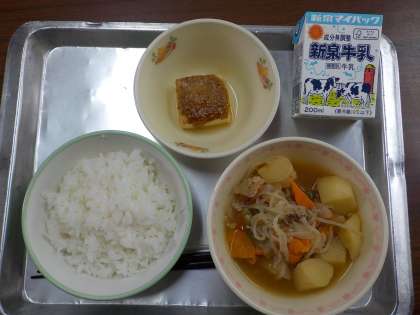 今日の献立はごはん,牛乳,肉じゃが,豆腐田楽でした。