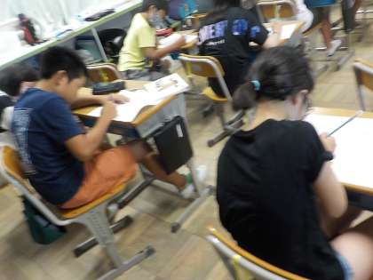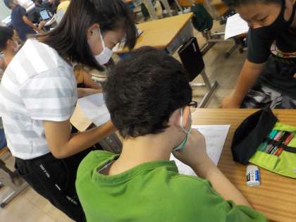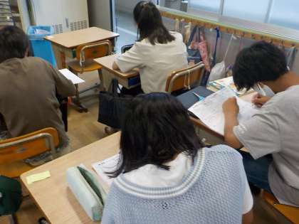 少人数で算数をしています。分数の割り算の文章問題を解いています。
