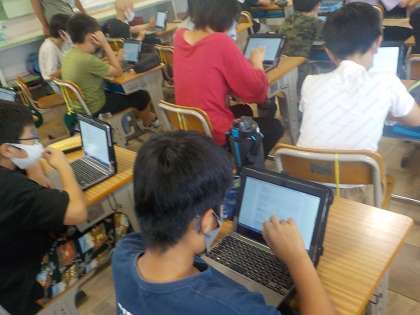 朝の時間を活用し,自分たちの情報活用能力についてアンケートに答えています。