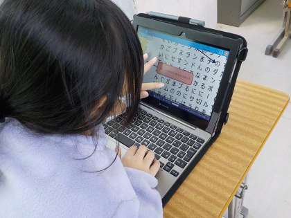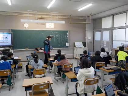 国語学習でおもちゃの作り方について書いた文章をみんなで見せ合っています。