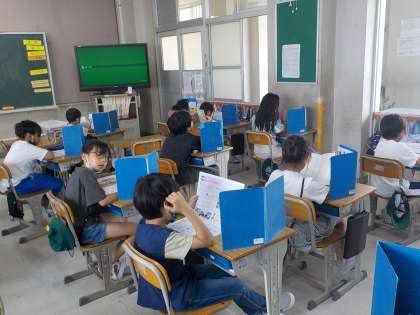 社会のテストをしています。早く終わった人は読書をしています。