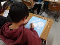 明日の参観の看板づくりです。段ボールで一人ひとり工夫を凝らしていました。