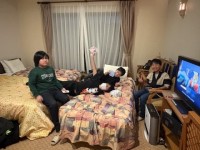 ホテルに着き、入館式をしています。この後鍵を受け取り、班ごとに部屋に入ります。