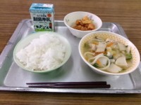 今日のメニューは,ごはん,冬野菜スープ,ドライカレーでした。