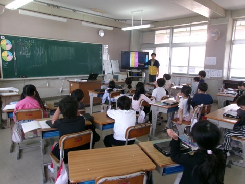 2桁のたし算のやり方を説明していました。例えば一の位に1が14個あると,10のかたまりが1つと残りが4になるので,10のかたまりを十の位に1つけ足すという繰り上がりについての学習です。繰り上がりや繰り下がりはたし算,ひき算の基本となる大切な考え方です。