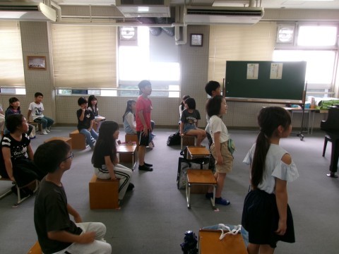 同じ誕生月の子たちが立って,一つの曲を順番に歌っています。歌詞を短く区切って,月ごとに少しずつ歌うことで,一曲を歌い上げていきます。