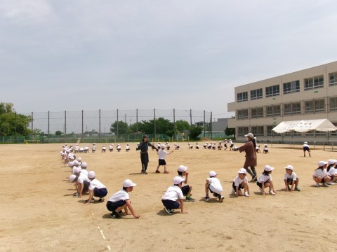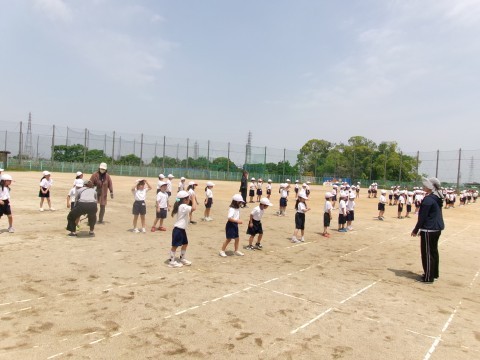 体育大会のダンス練習をしていました。運動場で行って,実際の立ち位置などを確認することができました。本番までしっかり頑張ろう!